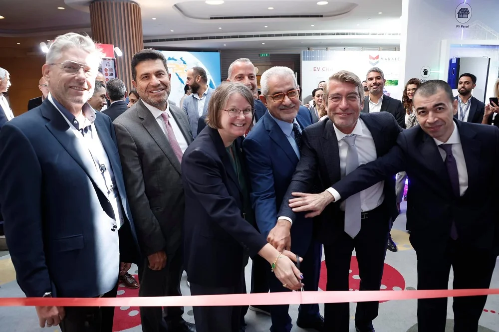 USAID Lebanon Mission Director Julie Southfield inaugurated the USAID Booth during a ribbon cutting ceremony at the Beirut Energy Week in the presence of Dr. Walid Fayad, Minister of Energy and Water, Dr. Nasser Yassin, Minister of Environment, MP Sajih Attieh, the head of the Energy Parliamentary Committee, Chairman and CEO of IM Fndng, Nicolas Rouhana, and Michel Daher Social Foundation President Marleine Daher.